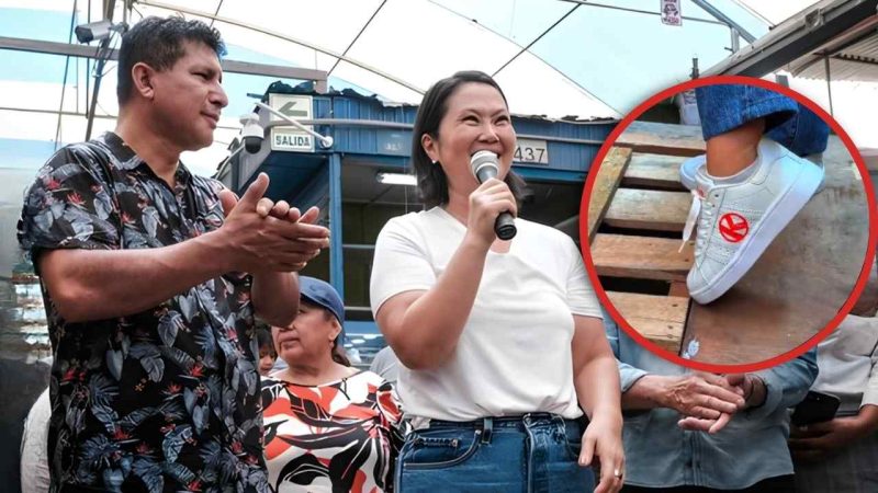 En el desarrollo de la jornada, un comerciante le entregó unas zapatillas personalizadas con la letra “K”, símbolo asociado a Fuerza Popular. El hecho fue registrado por asistentes y difundido posteriormente en redes sociales.