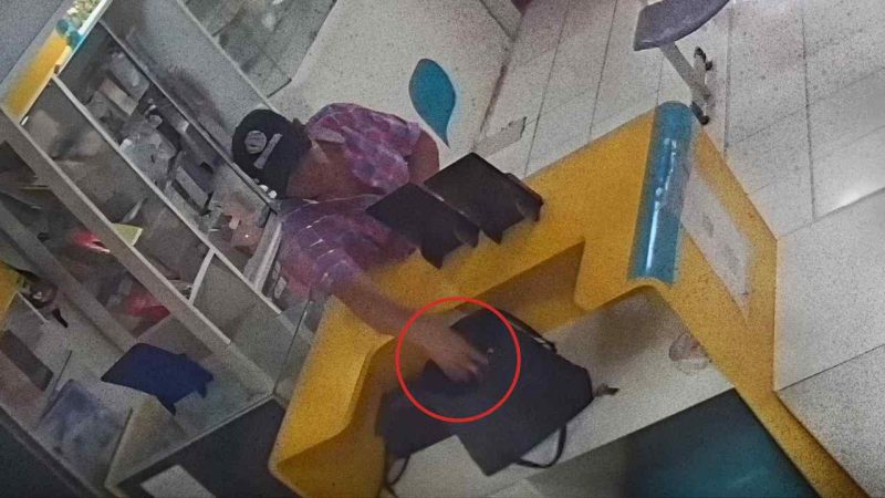 El hecho ocurrió el 28 de marzo en un local de la empresa Bitel, ubicado en la avenida Atahualpa. En las imágenes se observa cómo el individuo, con gorra negra y camisa roja, merodea el establecimiento fingiendo ser cliente.