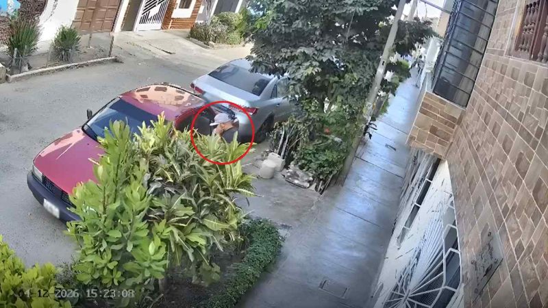 Cámaras de seguridad registraron el momento en que un sujeto habría robado un vehículo en la urbanización El Sol, en Trujillo. El individuo, vestido de negro y con gorro, merodeó la zona mientras fingía hablar por teléfono antes de cometer el presunto delito, según vecinos.